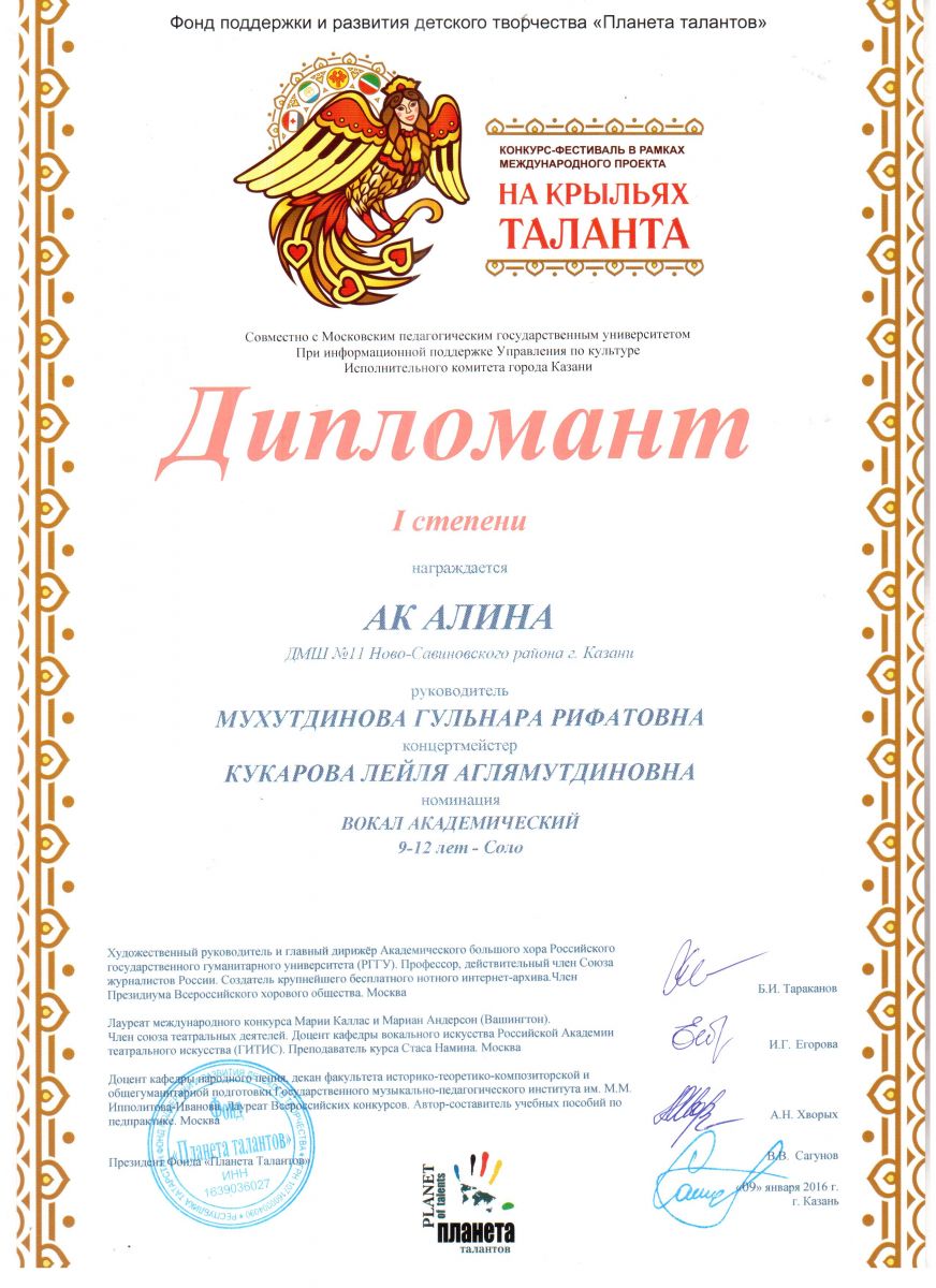 25 Ак Алина дипломант 1 степени На крыльях таланта