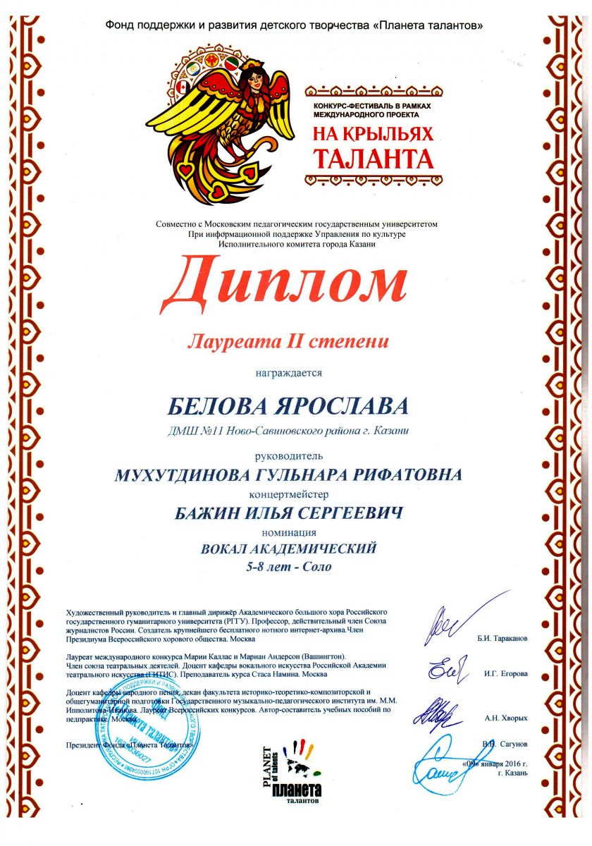 21 Белова Ярослава лауреат 2 степени На крыльях таланта