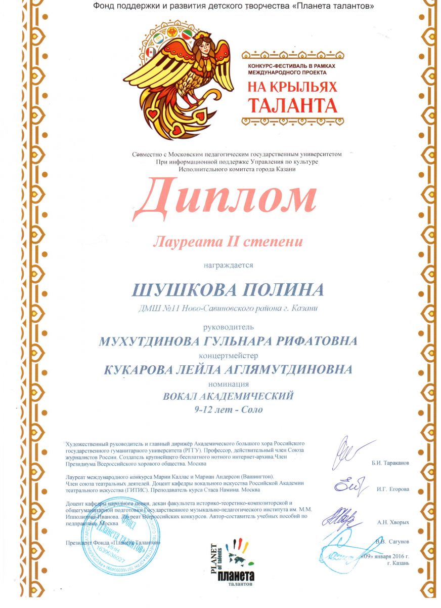 23 Шушкова Полина лауреат 2 степени На крыльях таланта