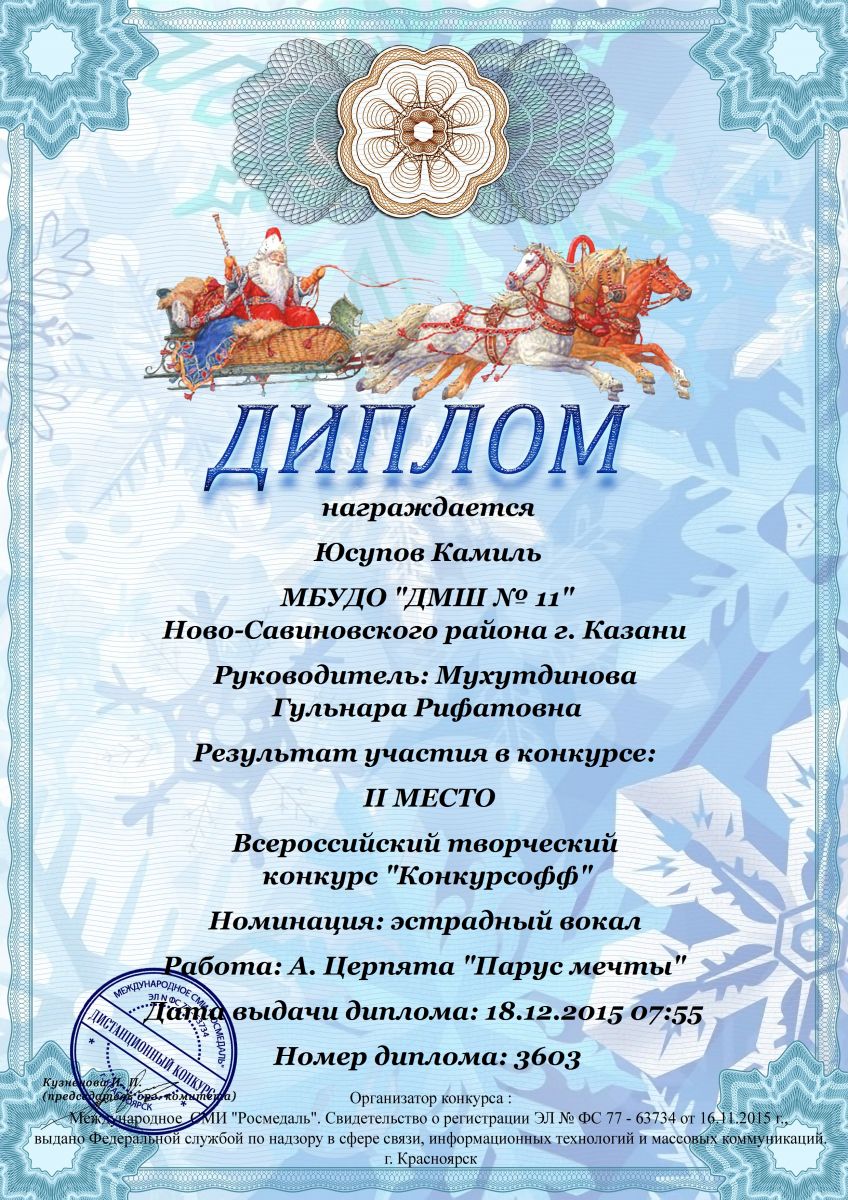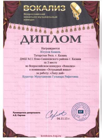 23 Юсупов Камиль диплом за 3 место Вокализ