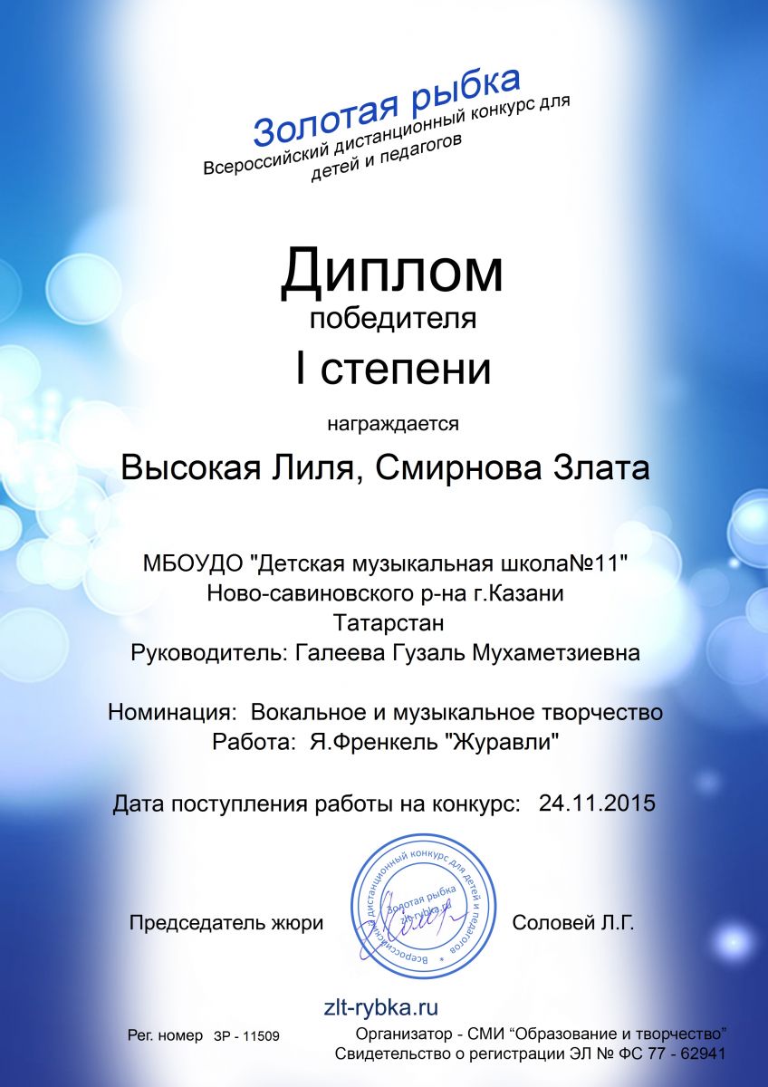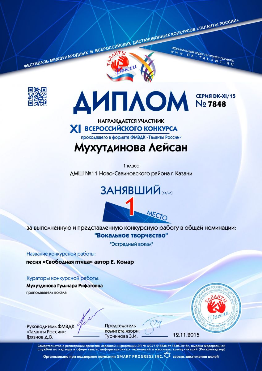 22 Мухутдинова Лейсан диплом за 1 место Вокализ