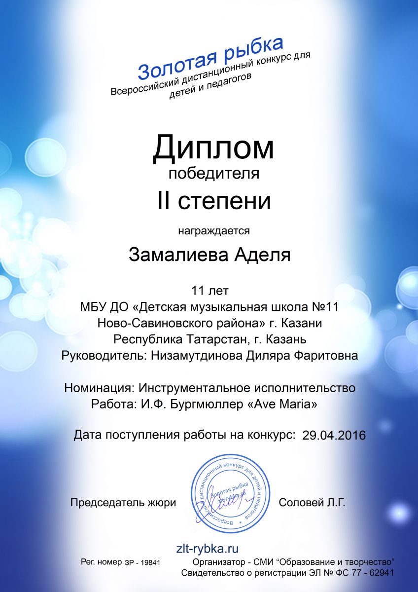 48 Замалеева Аделя победитель 2 степени Золотая рыбка