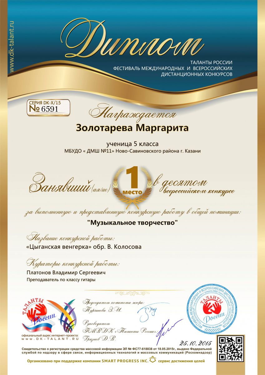45 Золотарева Маргарита, лауреат 1 степени, Таланты России