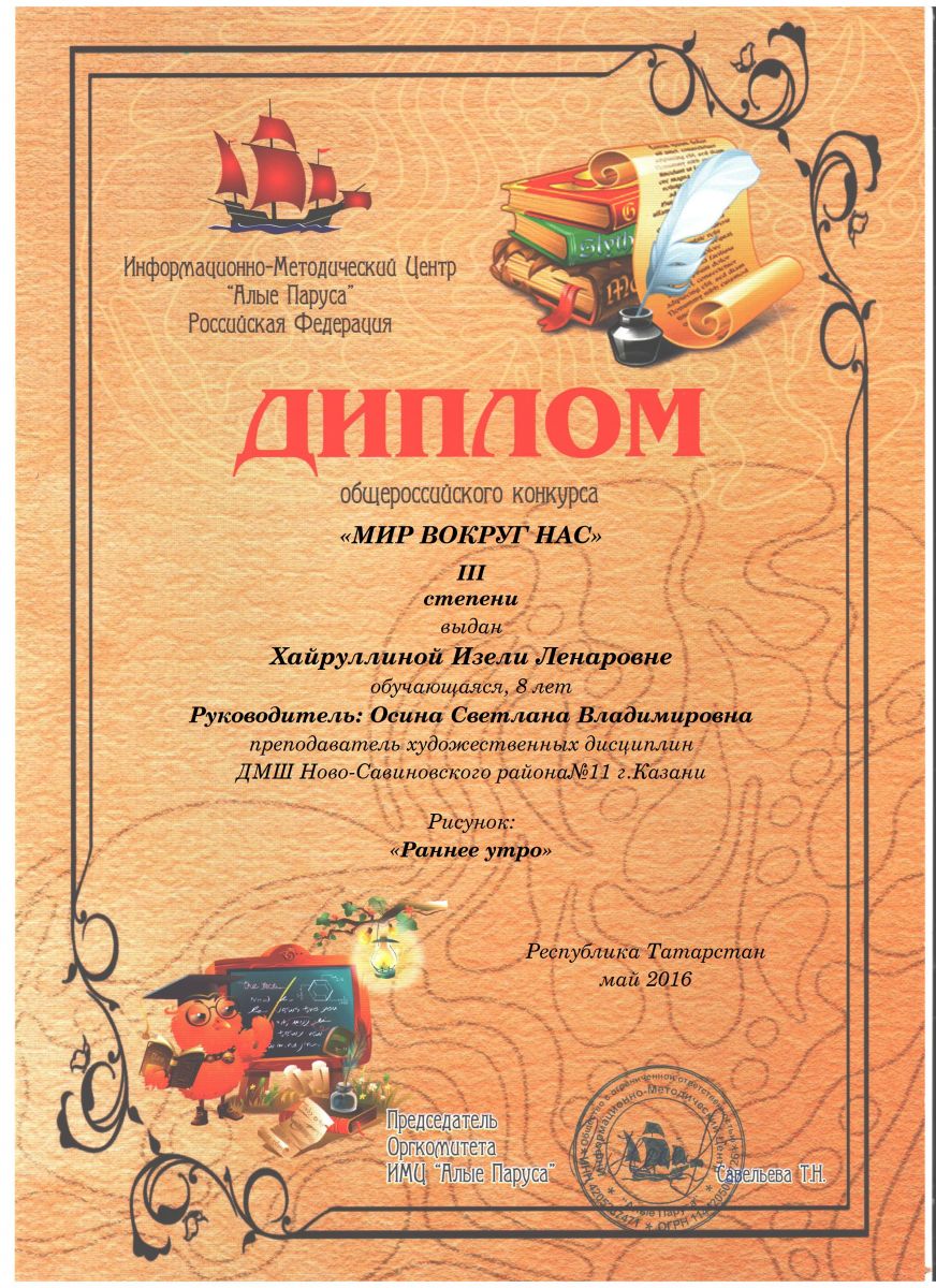 32 Хайруллина Изель диплом 3 степени МИр вокруг нас
