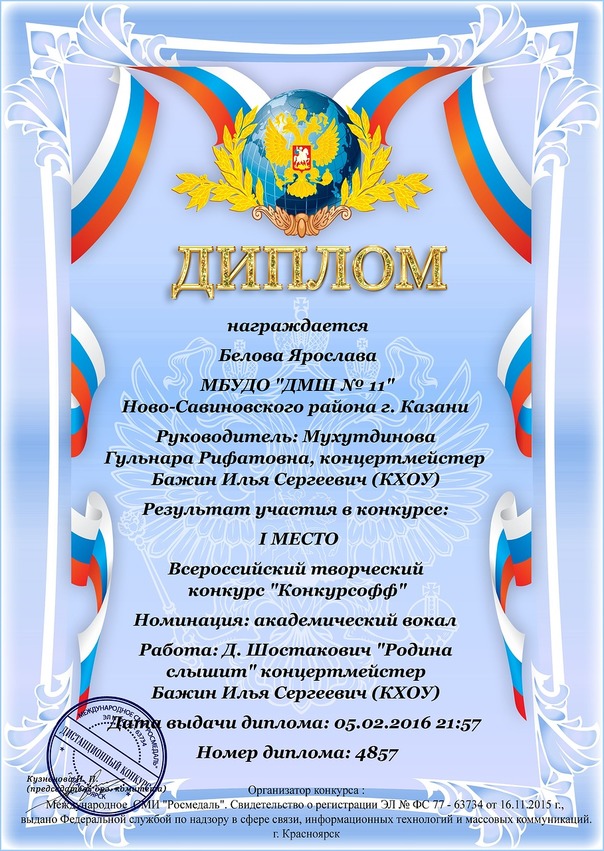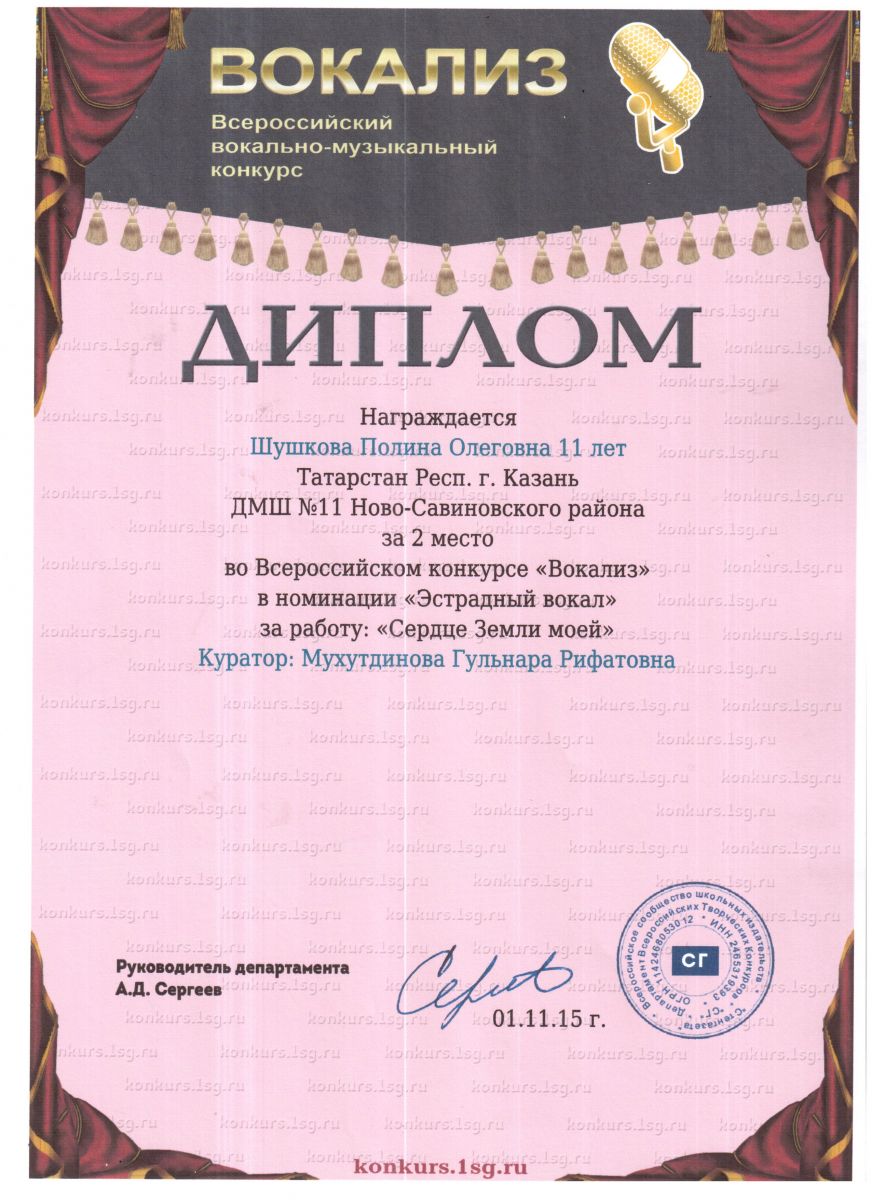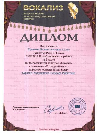 29 Шушкова Полина, 2 место, всероссийский вокально-музыкальный конкурс Вокализ
