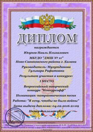 30 Юсупов Камиль, 2 место, всероссийский творческий конкурс "Конкурсофф"