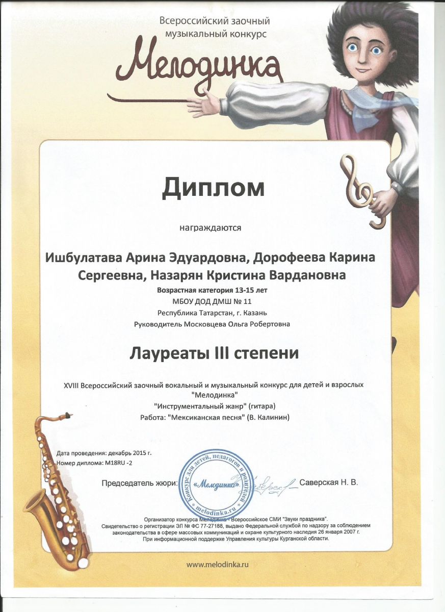 25 Ишбулатова Арина, диплом 1 степени, Мелодинка