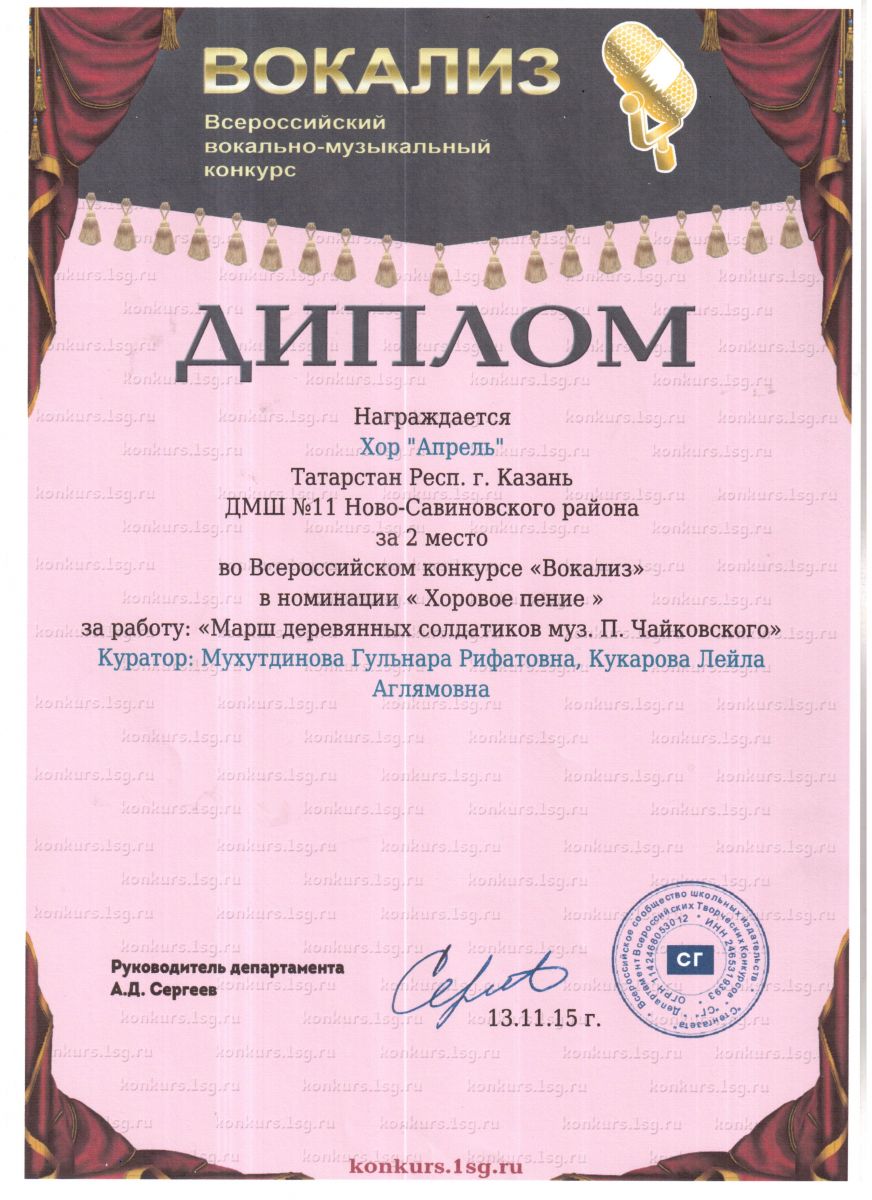 28 хор "Апрель", 2 место, всероссийский вокально-музыкальный конкурс Вокализ