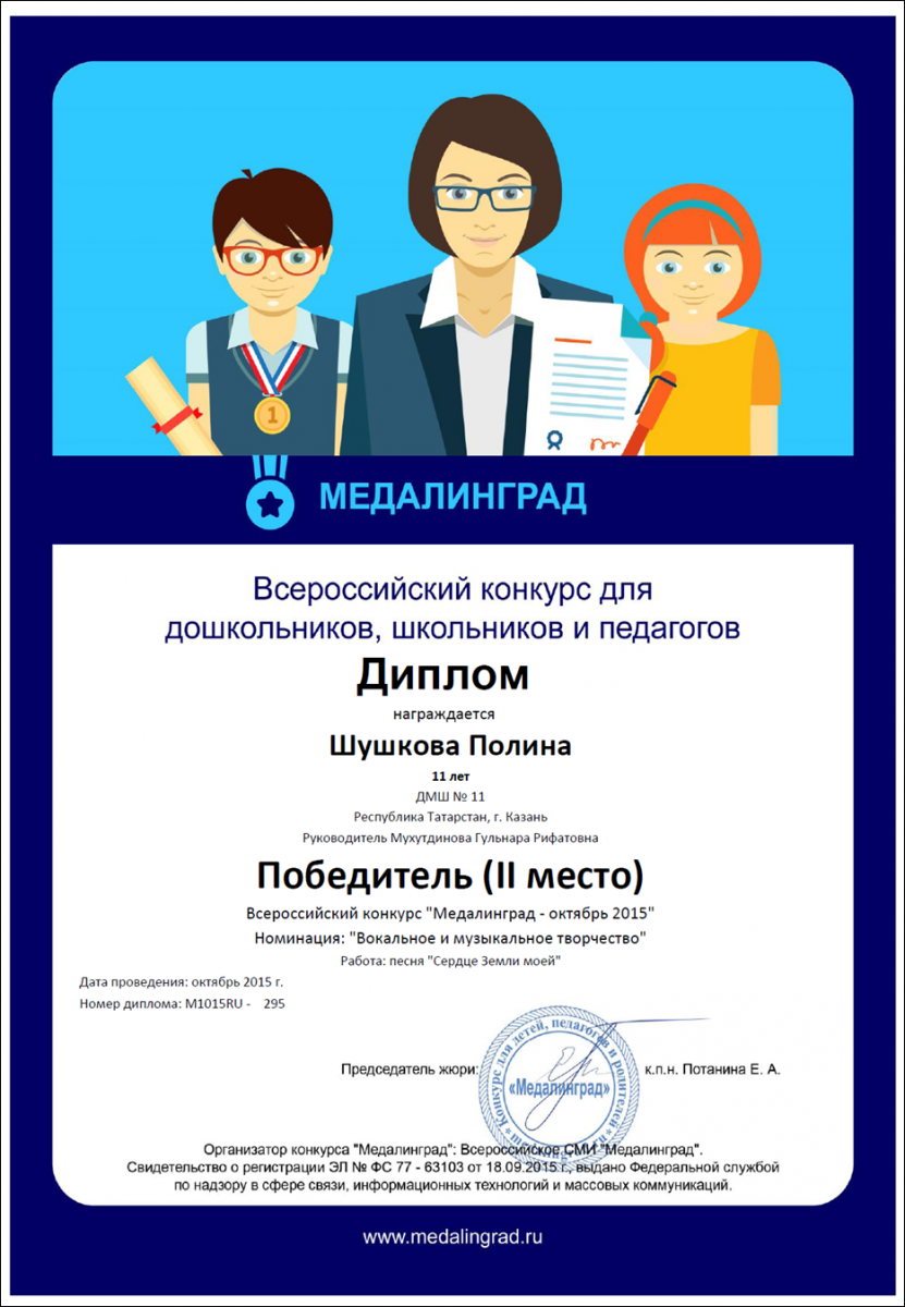 43 Шушкова Полина, лауреат 2 степени, Медалинград
