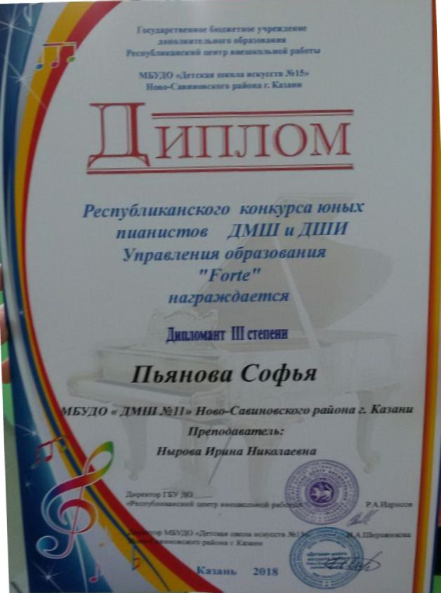 43 Пьянова Софья Дипломант III степени "Forte"