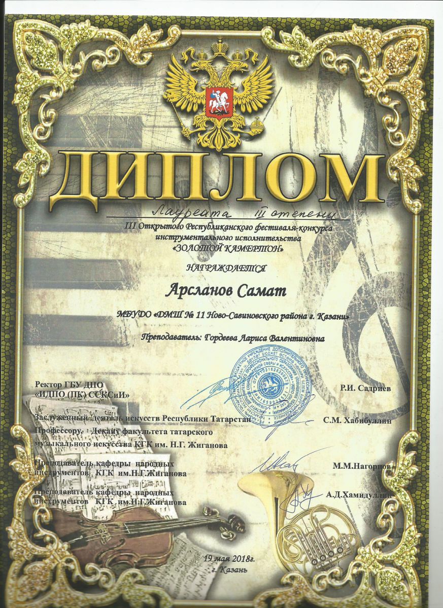 15 Арсланов Самат Конк. им. Вафиры Гизатуллиной Дипломант I степени