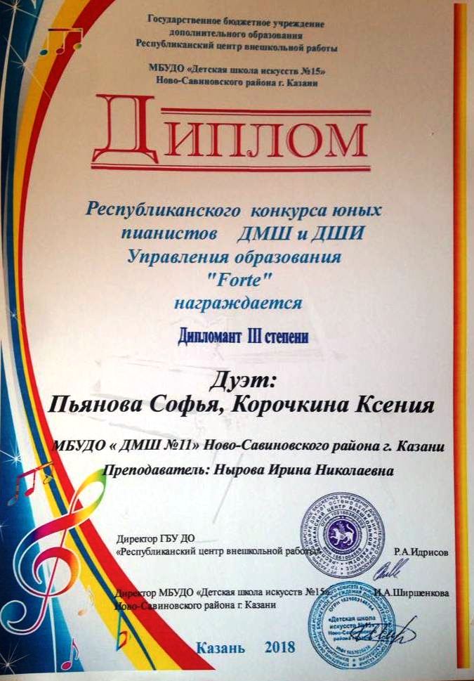 44 Пьянова С. - Корочкина К. Дипломант III степени "Forte"