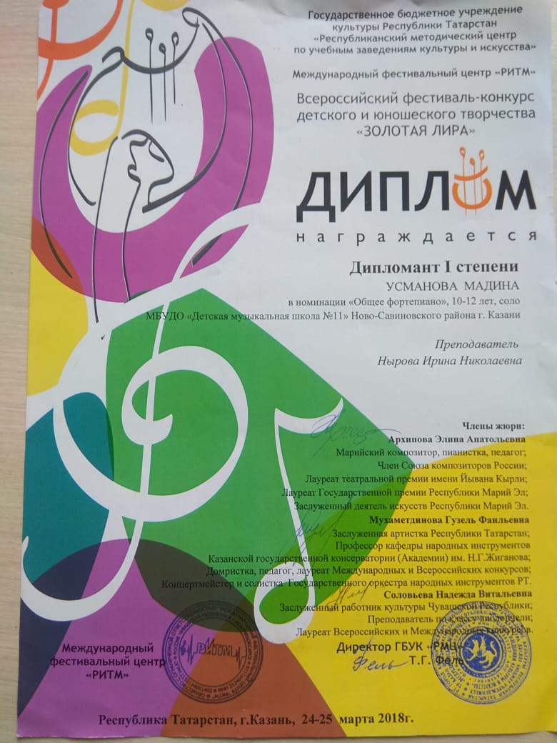 20 Усманова Мадина "Золотая лира" дипломант I степени