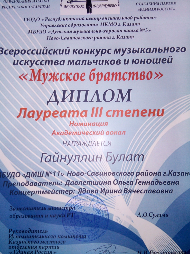 3 Егоров Дмитрий Лауреат III степени " конкурс юных пианистов им. Н.Г. Жиганова"