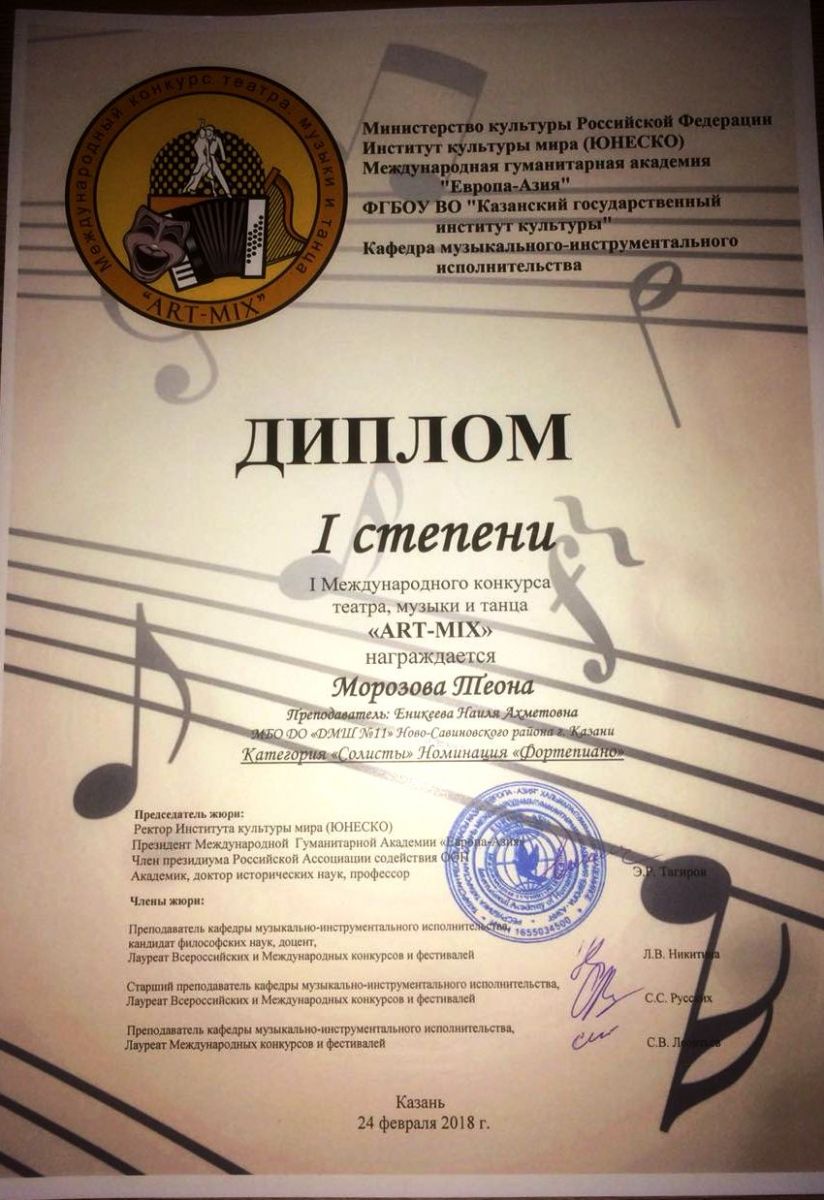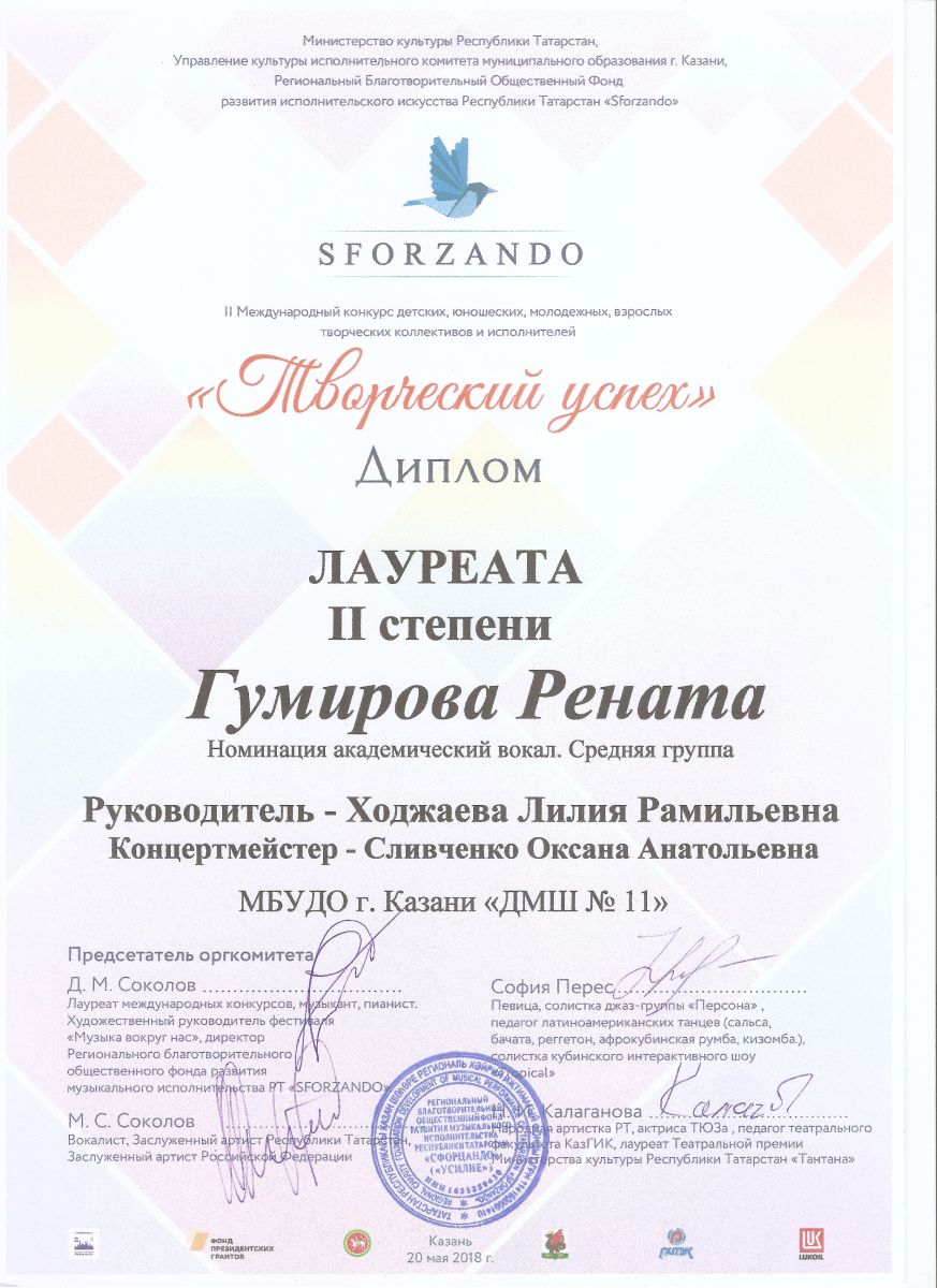 24 Фаткуллина Рената Диплом III степени "Kazan-Muzik Йорт"