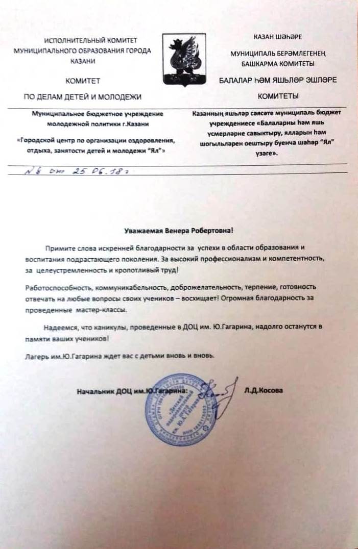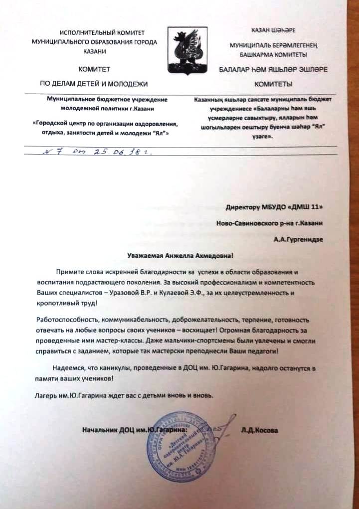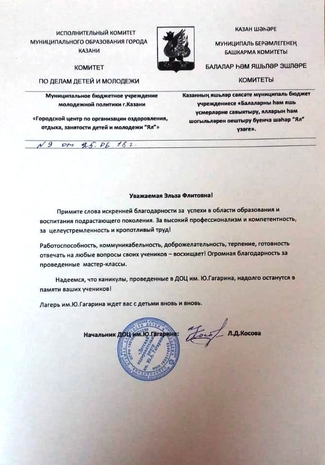 1 Творческая смена в Летнем оздоровительном лагере им. Ю.Гагарина, г. Казань, п. Залесный 1, 2, 3, 4 Приказ ожидается позднее