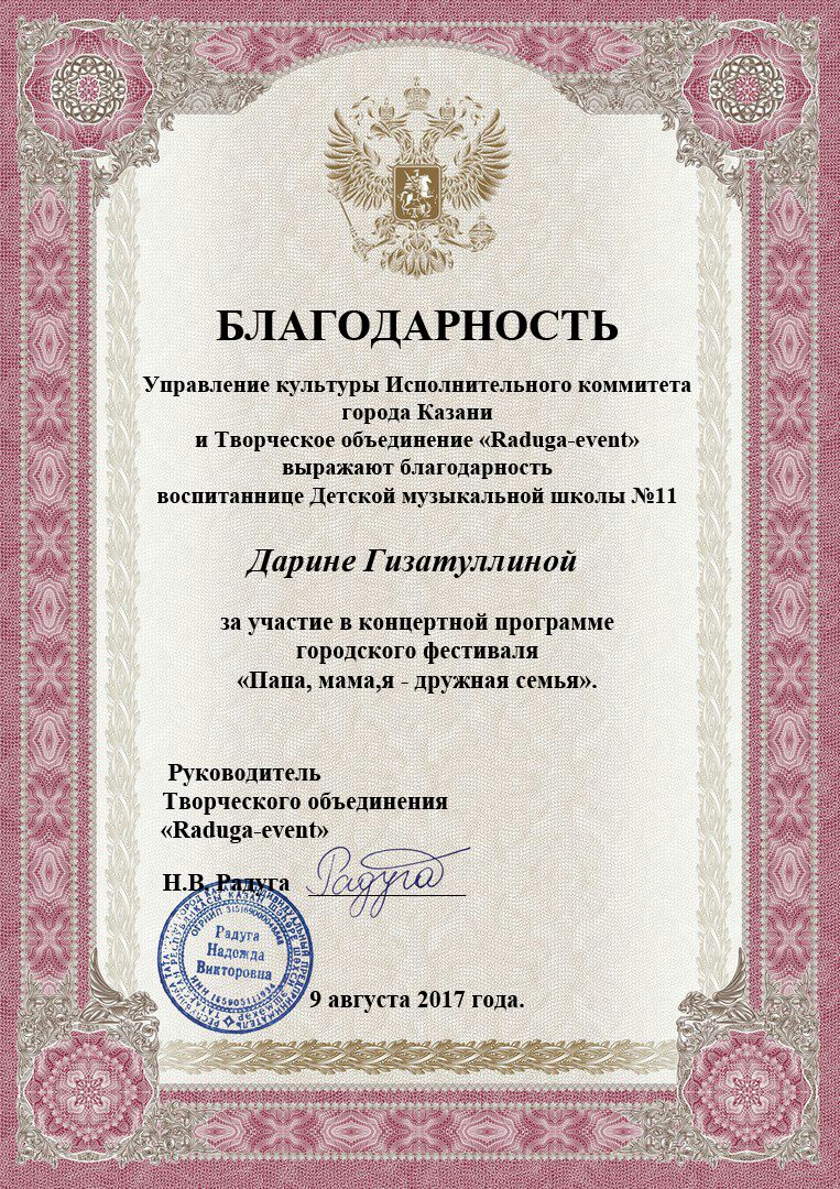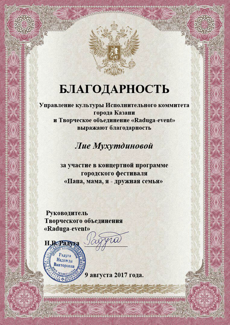 Благодарности участникам: Зиганшиной Эмилии, Мухутдиновой Лие, Гизатуллиной Дарине