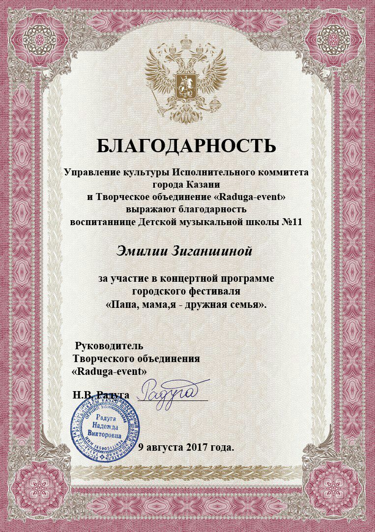 Благодарственные письма участникам Зиганшиной Эмилие, Матвеевой Полине