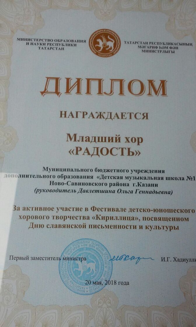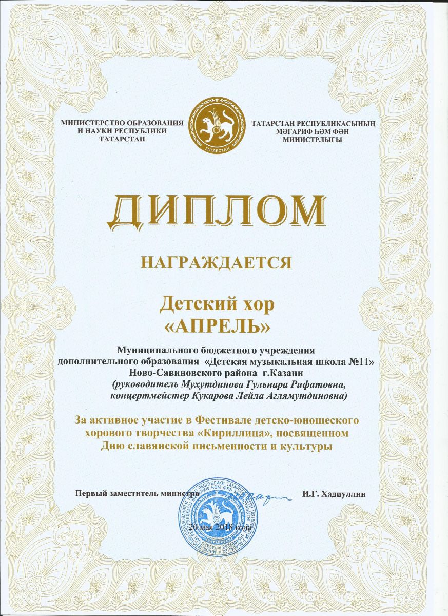 Дипломы МОиН хор "Апрель", хор "Радость"