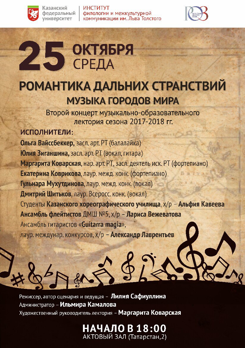 6 КФУ Музыкально-образовательный лекторий сезона 2017-2018 Концерт "Романтика дальних странствий"