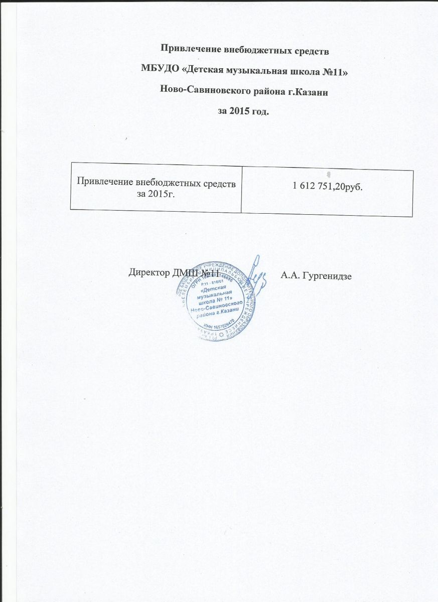 Привлечение и расходовании внебюджетных средств, поступивших в ДМШ №11 в 2015 году