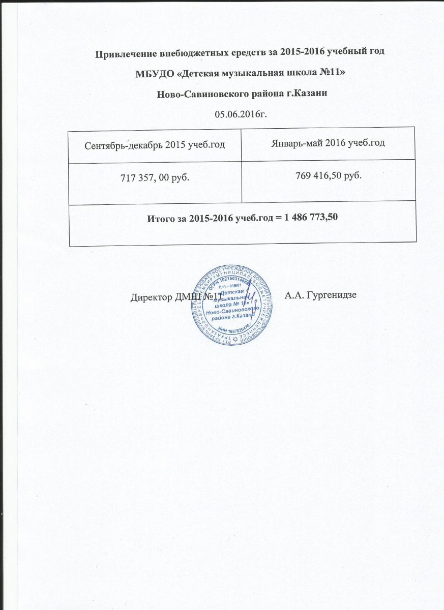 Привлечение и расходовании внебюджетных средств, поступивших в ДМШ №11 в 2016 году