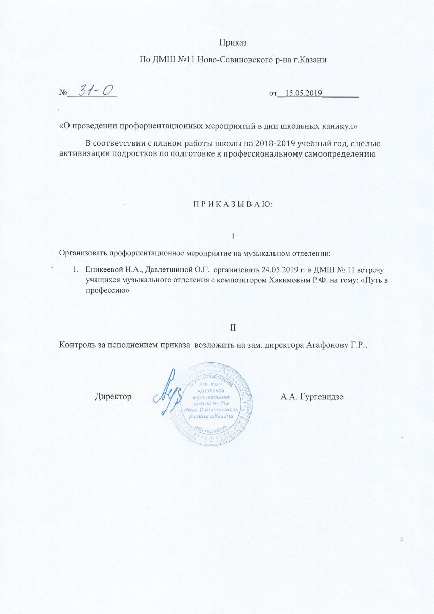 Журнал провориентационных мероприятий ДМШ11 за 2018-2019 г., стр. 1