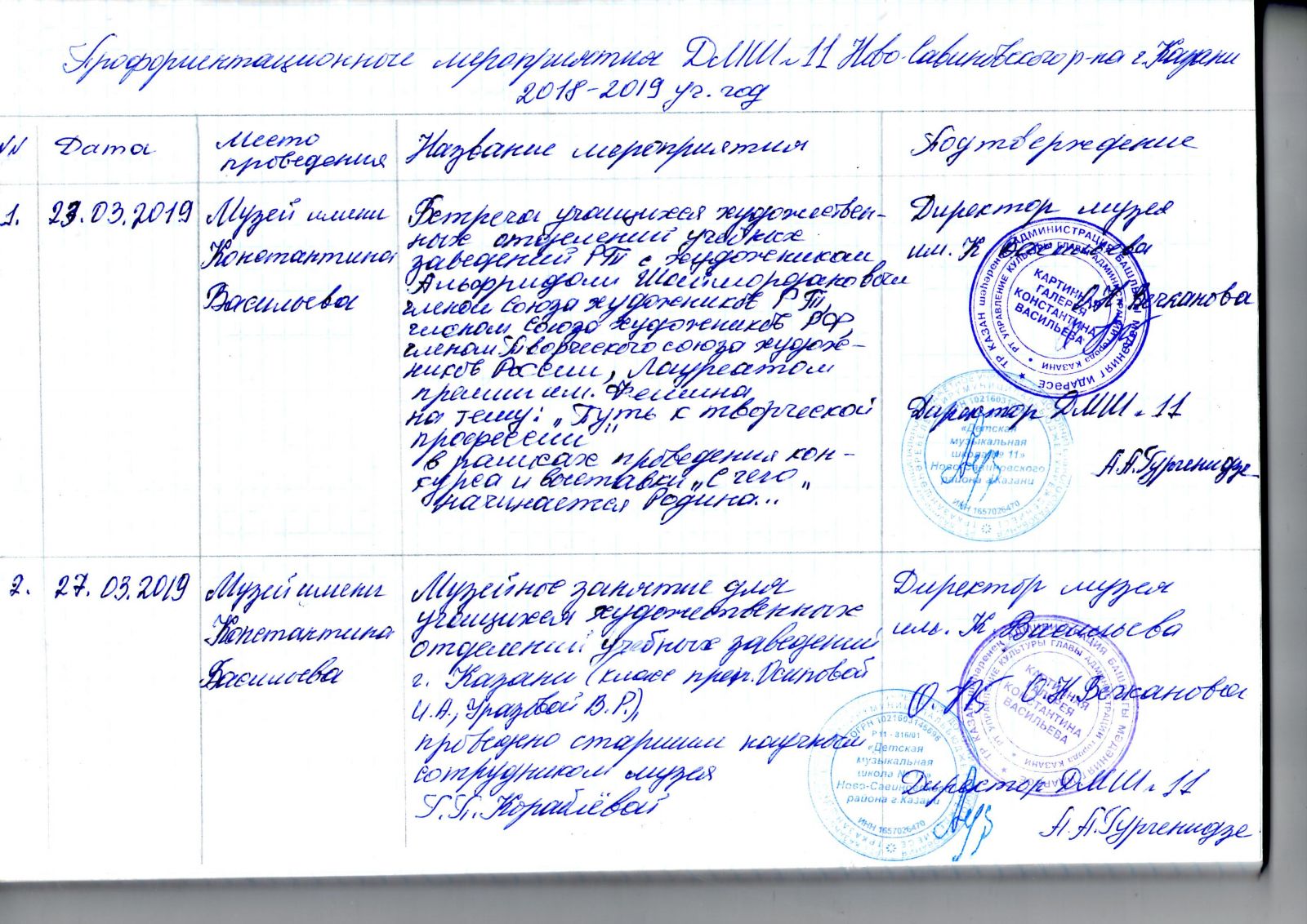 Журнал провориентационных мероприятий ДМШ11 за 2018-2019 г., стр. 2