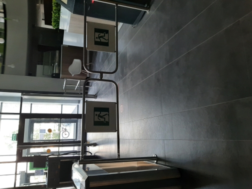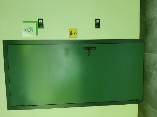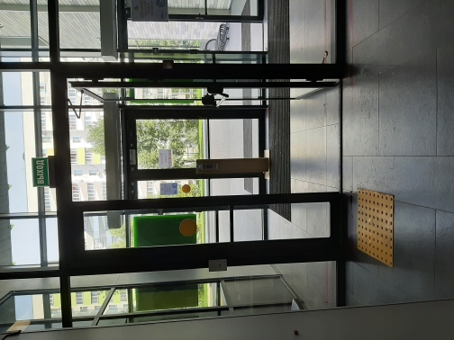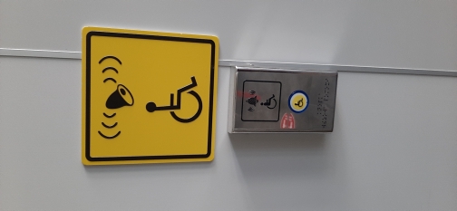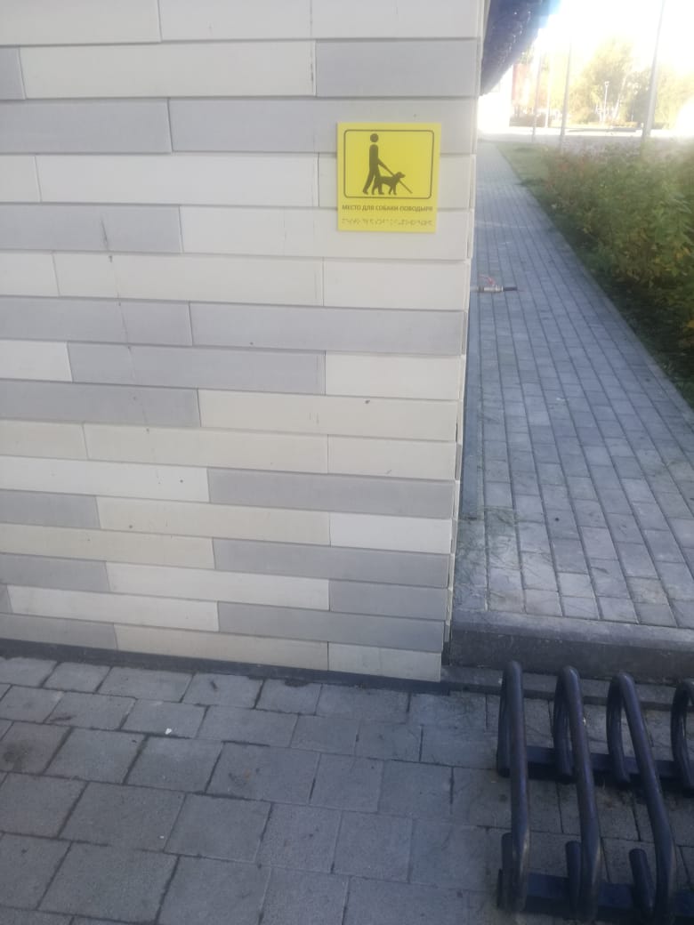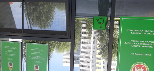 Входная группа оборудована табличкой с названием организации шрифтом Брайля, кнопкой вызова.