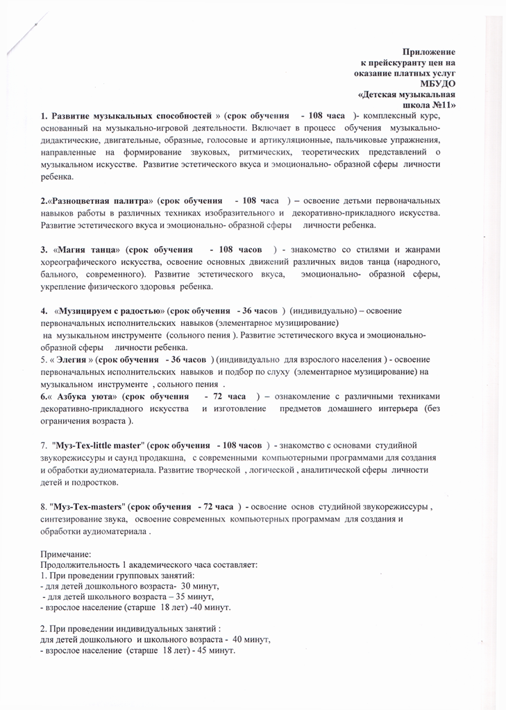 Прейскурант цен на оказание платных услуг 2019-2020 учебный год