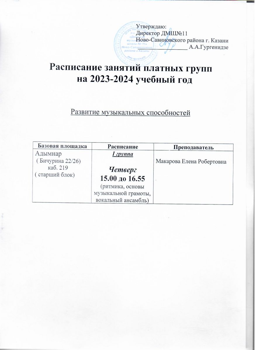 Расписание занятий платных групп на 2023-2024 учебный год