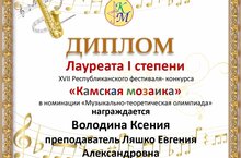 Поздравляем с успешным выступлением на XVII Республиканском фестиваль-конкурсе "Камская мозаика" ученицу преподавателя теоретических дисциплин Ляшко Евгении Александровны: