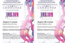Поздравляем с успешным выступлением на Международном конкурсе искусств "Симфония талантов":