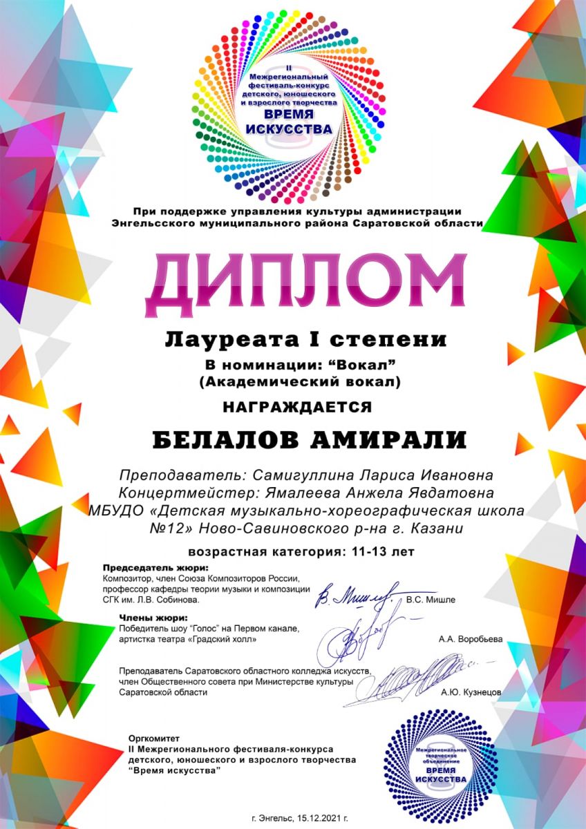 - Белалова Амирали- Лауреата 2 степени (преподаватель Самигуллина Л.И.)