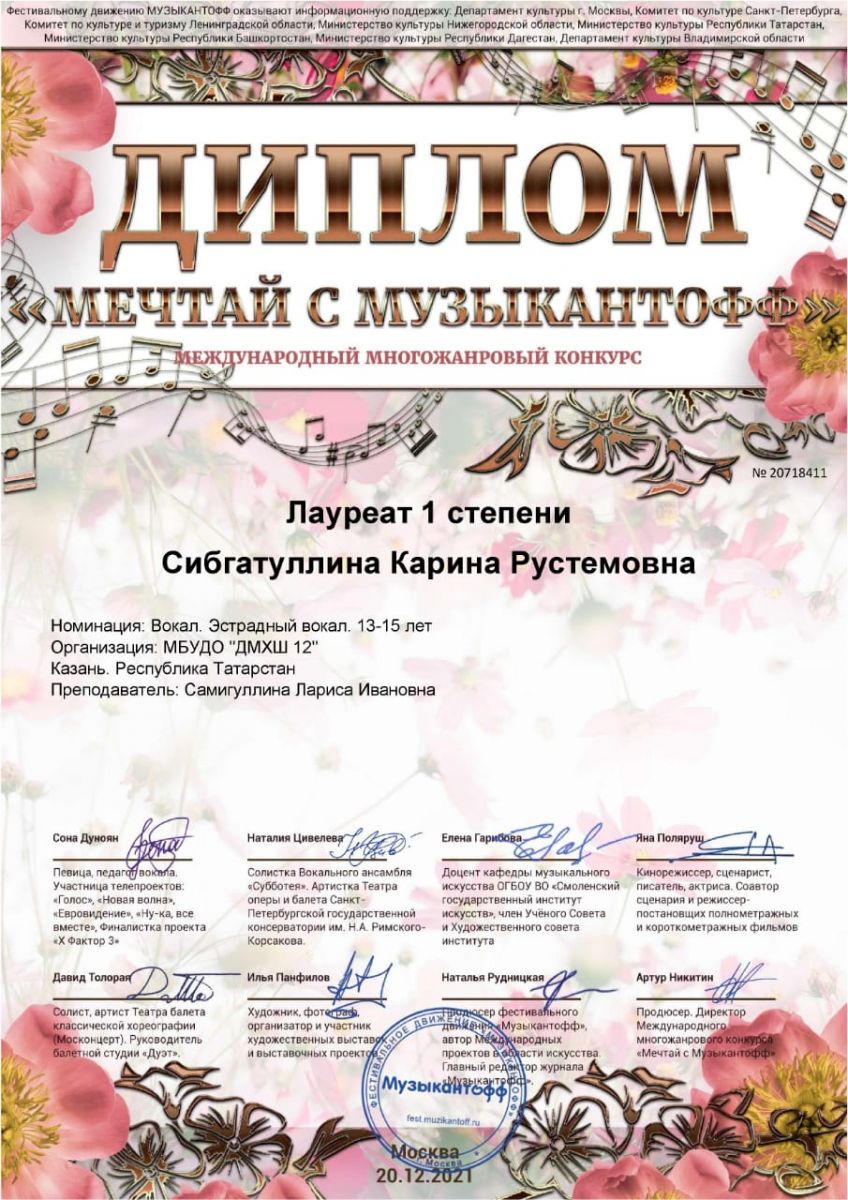 Поздравляем с успешным выступлением на Международном многожанровом конкурсе "Мечтай с музыкантофф":