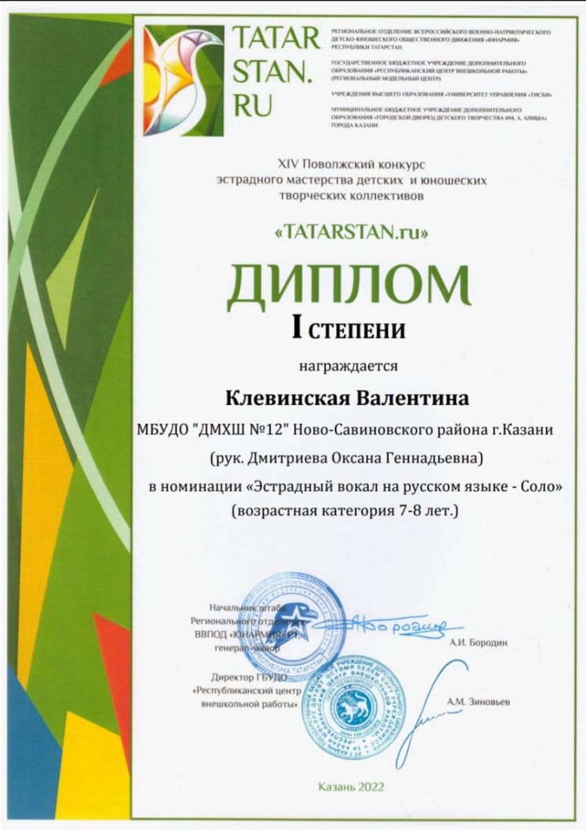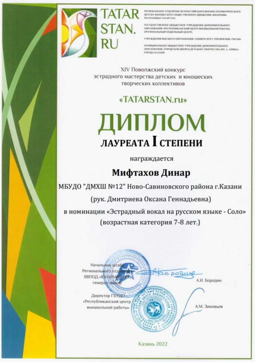 Поздравляем с успешным выступлением учащихся нашей школы на XIV Поволжском конкурсе эстрадного мастерства детских и юношеских творческих коллективов "TATARSTAN.ru":