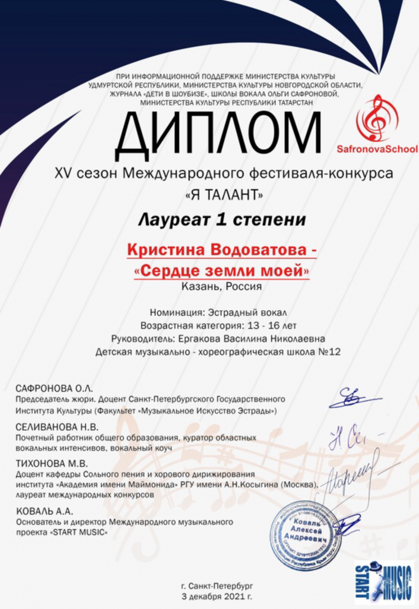 Поздравляем с успешным аыступлением в XV сезоне Международного фестиваль-конкурса "Я ТАЛАНТ":