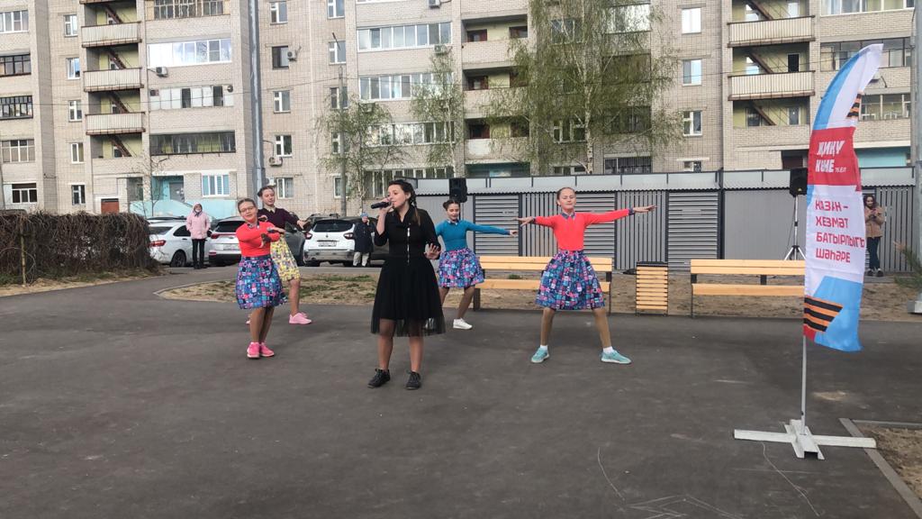 Продолжаются праздничные концерты "Парад у дома ветерана" в Ново-Савиновском районе, в котором 5 мая учащиеся нашей школы, Водоватова Кристина и хореографический коллектив Созвездие детство" приняли участие.