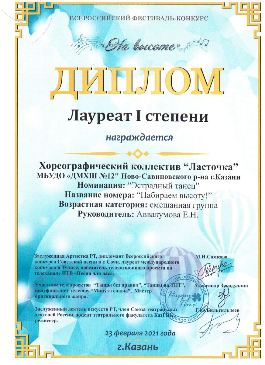 Поздравляем с успешным выступлением на Всероссийском фестиваль-конкурс "На высоте"