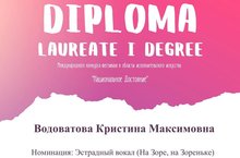 - Водоватову Кристину - Лауреата 1 степени (преподаватель Ергакова В.Н.)