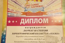 - Хореографический коллектив "Сказка" - Лауреатов 3 степени (преподаватель Солдатова Л.Г.)