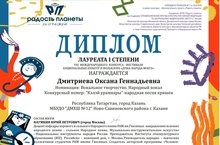 преподавателя вокала Дмитриеву Оксану Геннадьевну - Лауреата 1 степени.