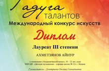 - Ахметзянова Айнура - Лауреата 3 сатепени (преподаватель Дмитриева О.Г., концертмейстер ямалеева А.Я.)
