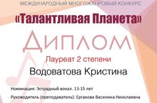Поздравляем с успешным выступлением на Международном многожанровом конкурсе "Талантливая Планета"