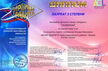 - Ансамбль детского танца "Эледанс" группу "Непоседы" - Лауреатов 1 степени в номинации Современный танец, смешанная возрастная группа. Преподаватель Сулейманова Э.М.