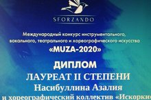 Поздравляем с успешным выступлением на Международном конкурсе инструментального, вокального, театрального и хореографического искусства "MUZA-2020" ученицу школы и хореографический коллектив "Искорки" -Лауреатов 2 степени. Желаем дальнейших успехов!