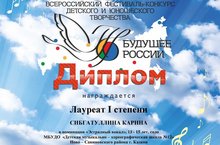Поздравляем с успешным выступлением на Всеросскийском фестиваль-конкурсе детского и юношеского творчества "Будущее России" учениицу школы -Лауреата 1 степени. Желаем дальнейших успехов!