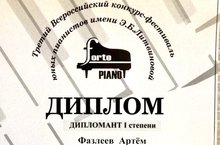 -Фазлеева Артема - Дипломанта 1 степени (преподаватель Зимина Д.М.)