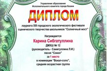 - Самигуллина Марселя - Лауреата 2 степени (преподаватель Ергакова В.Н., Самигуллина Л.И.)