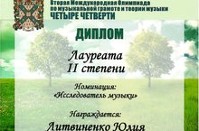 Поздравляем с успешным выступлением на 2 Международной Олимпиаде по музыкальной грамоте и теории музыки ЧЕТЫРЕ ЧЕТВЕРТИ: